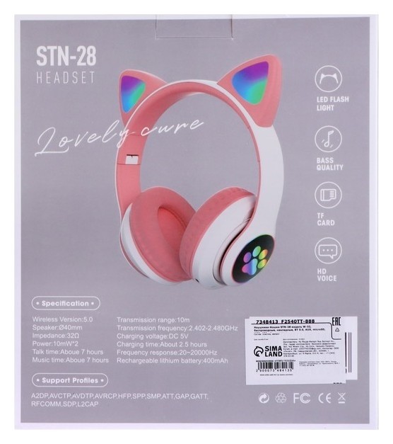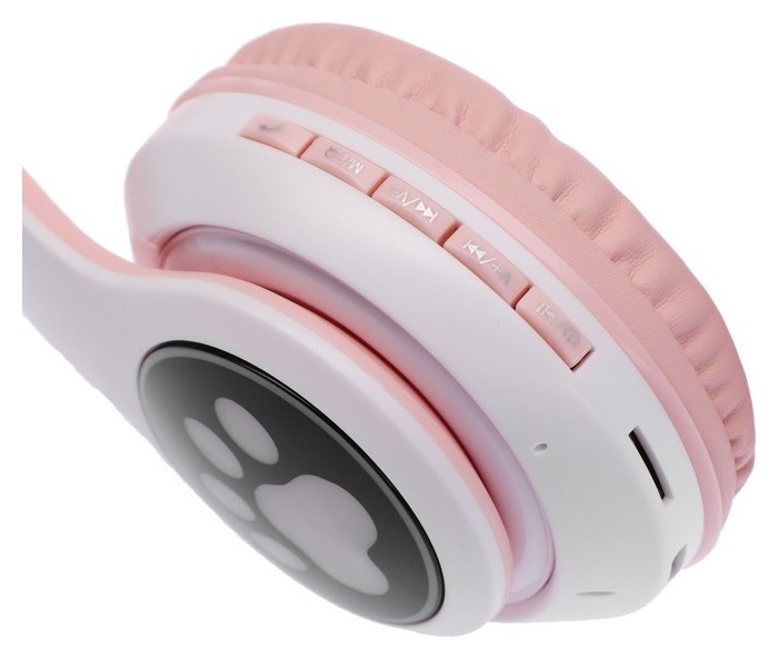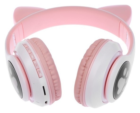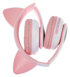 Наушники-кошки W-32, беспроводные, микрофон, BT 5.0, Aux, Microsd, Mp3, 400 мач, розовые
