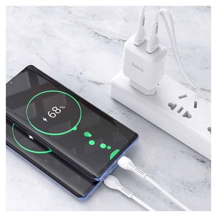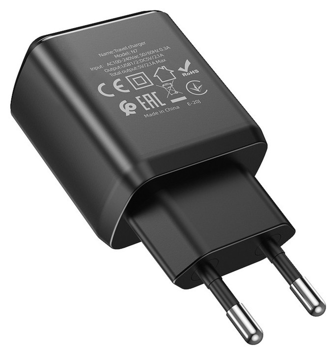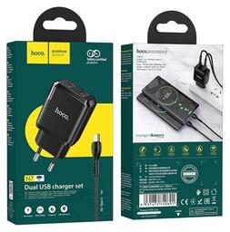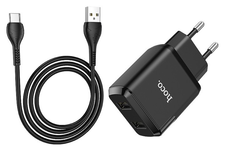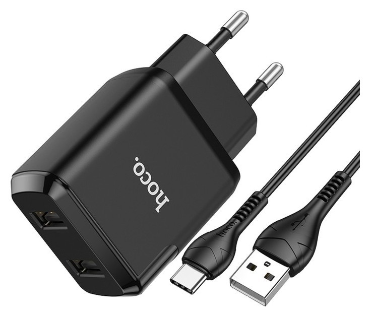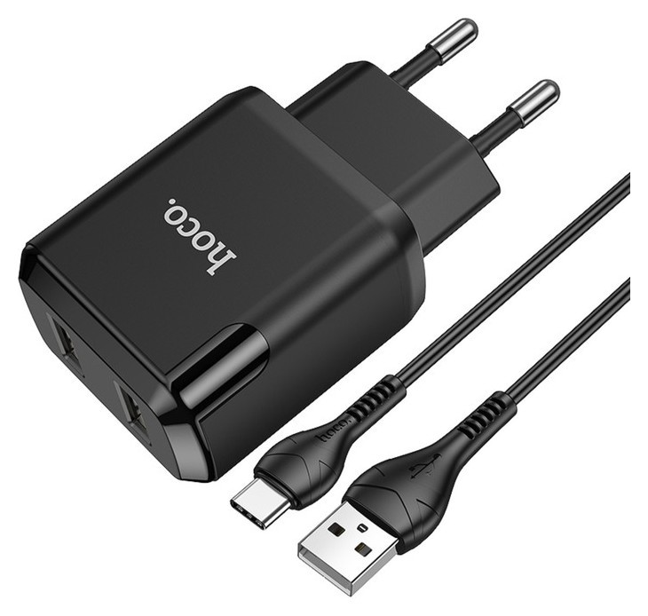 Сетевое зарядное устройство Hoco N7, 2 USB - 2.1 А, кабель Type-c 1 м, черный
