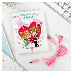 Наушники на открытке, «Love», вакуумные, розовые