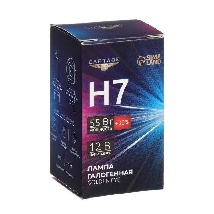 Галогенная лампа Cartage Golden Eye H7, 55 Вт +30%12 В