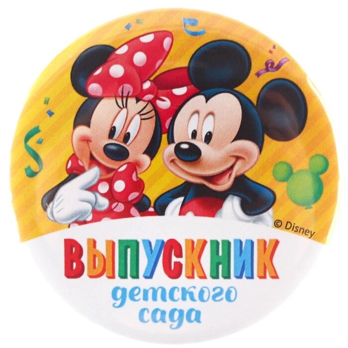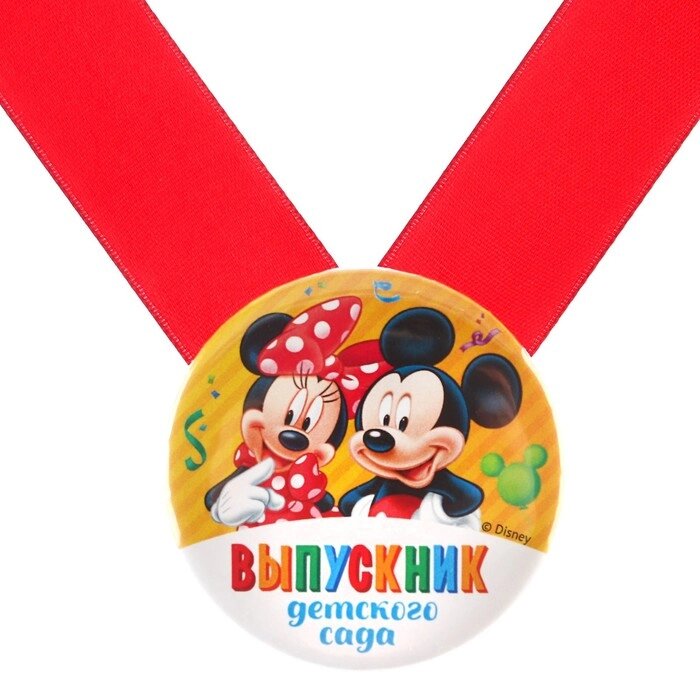 Значок "Выпускник детского сада" 5,6 см, с лентой, Микки Маус и его друзья