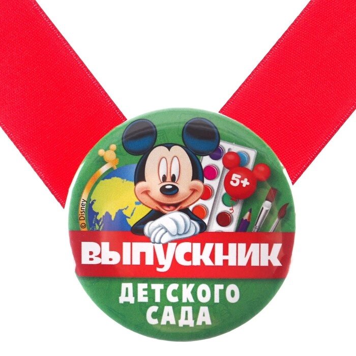 Значок "Выпускник детского сада" 5,6 см, с лентой, Микки Маус и его друзья