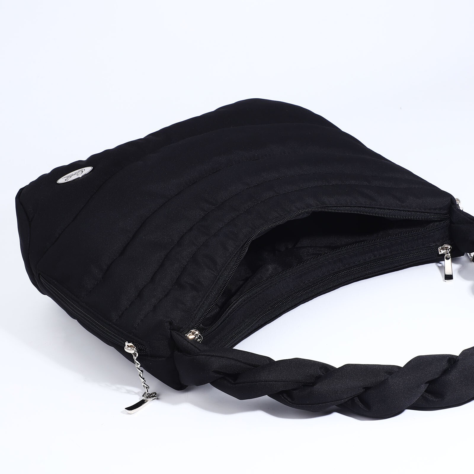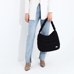 Сумка женская 1046, 39*11*24, 2 отд на молнии, 3 н/кармана, стежка черный текстиль