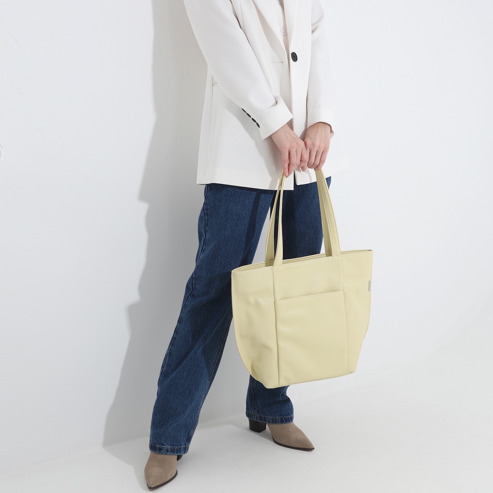Сумка-шопер на молнии, 2 наружных кармана, цвет жёлтый