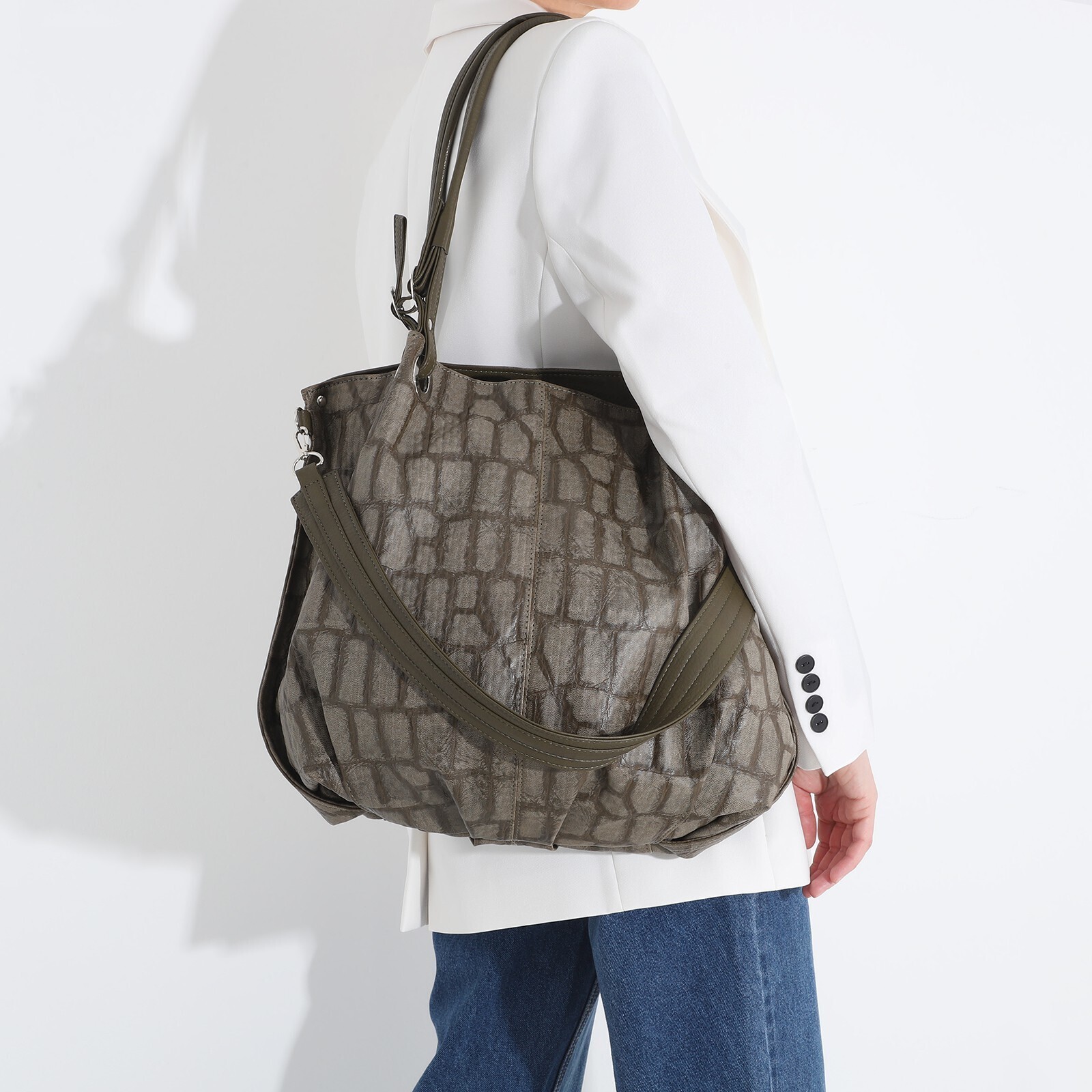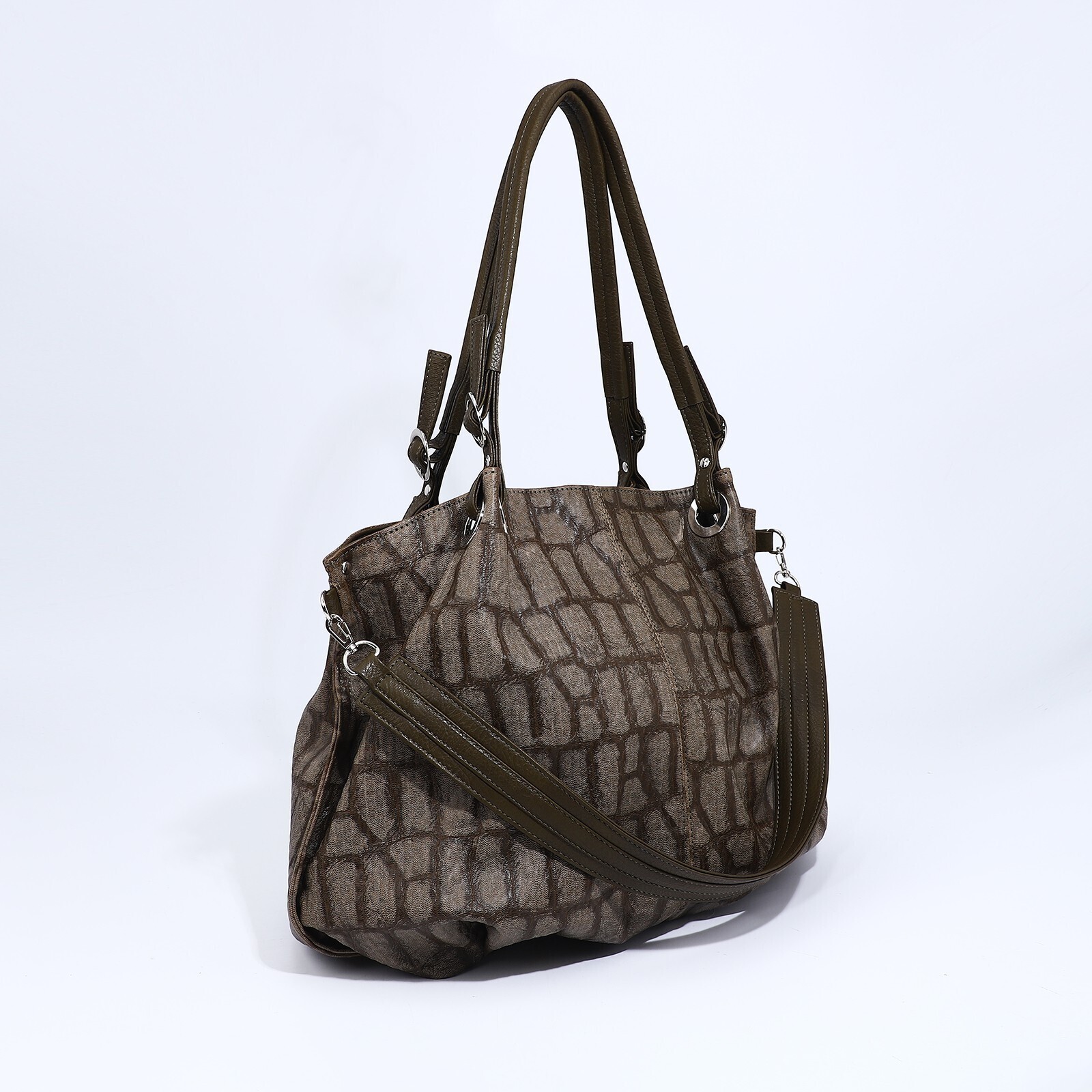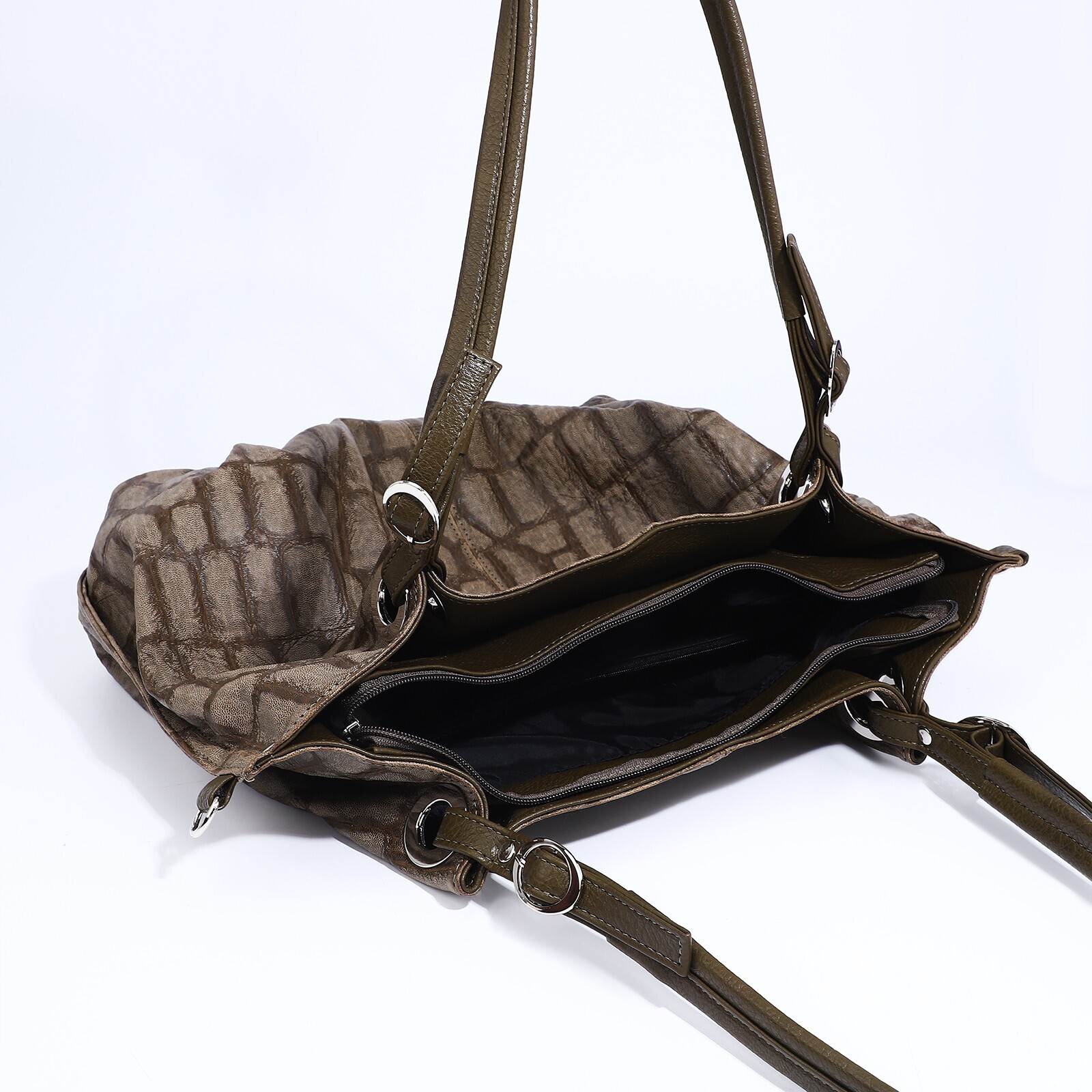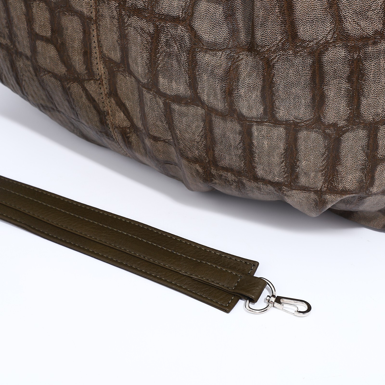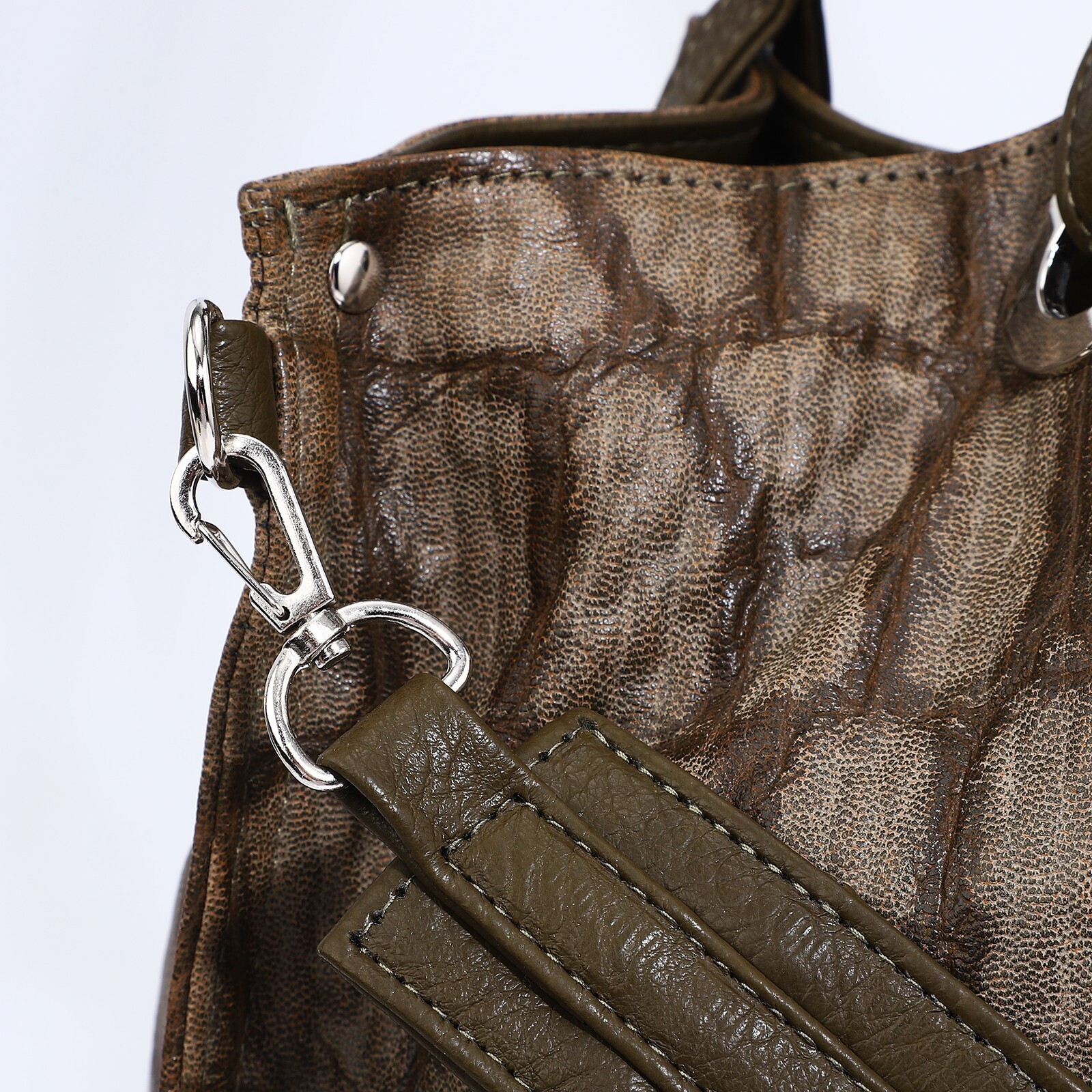 Сумка-шопер на молнии, наружный карман, длинный ремень, цвет зелёный