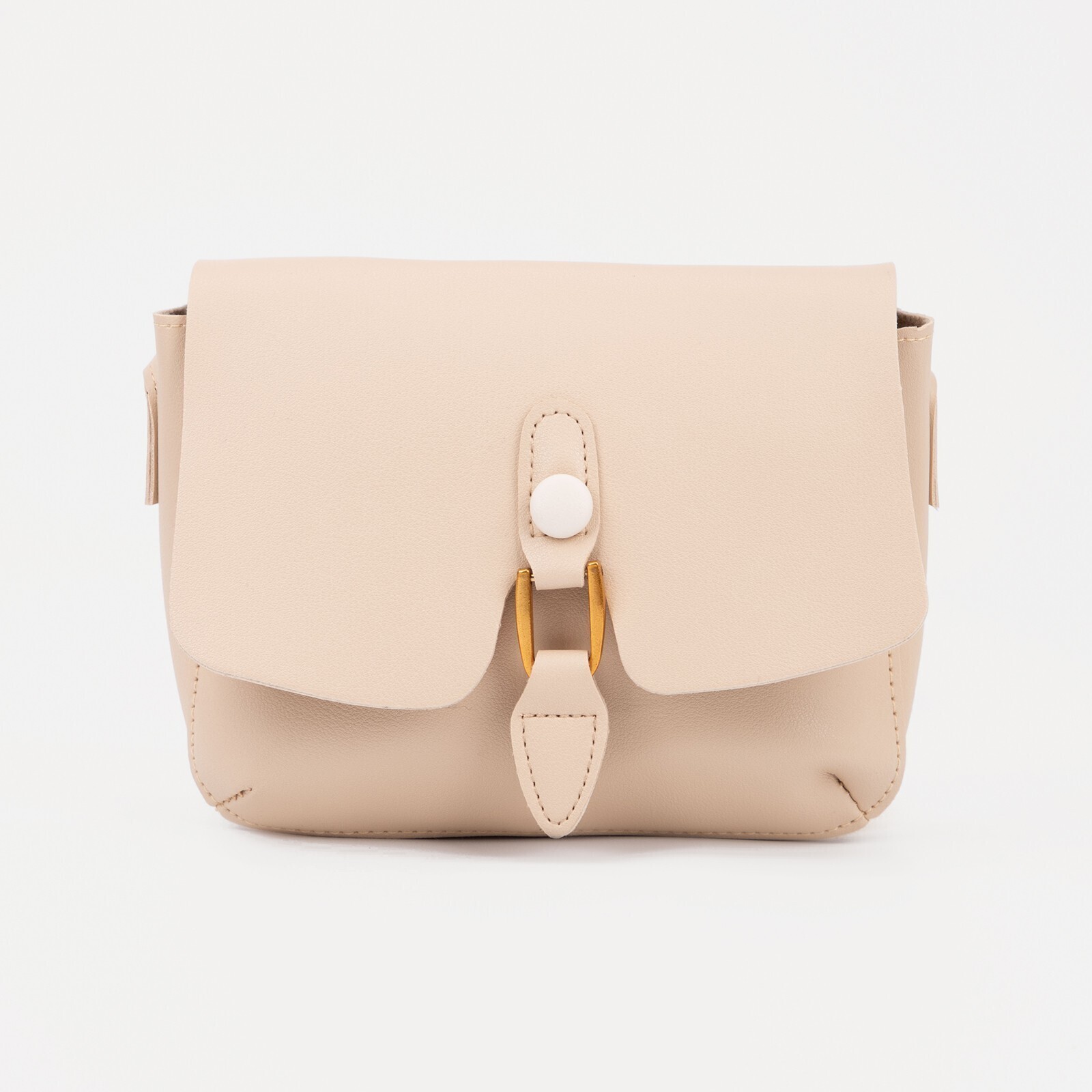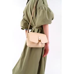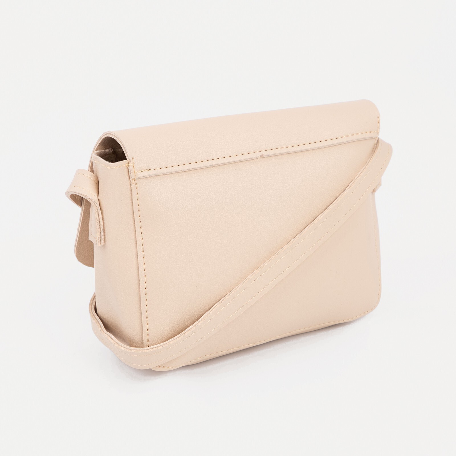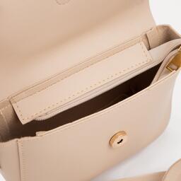 Сумка-мессенджер на клапане, длинный ремень, цвет бежевый