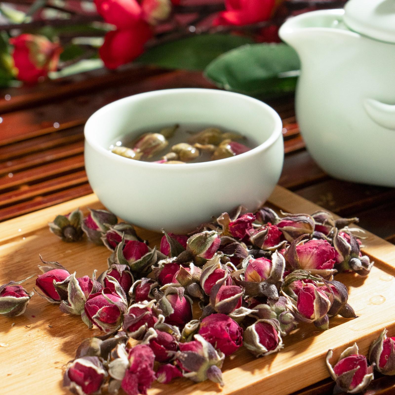 Мэйгуй Хуа — цветы китайской чайной розы, провинция Юньнань. Роза Мэйгуй Хуа одна из классических добавок к чаю. Всего несколько бутонов способны полностью преобразить напиток, насытив его яркими красками и ароматом. Как правило, розу добавляют в китайский красный чай – Дянь Хун или Кимун. Её можно заваривать и как самостоятельный напиток. Цветочный чай из розы очень хорошо расслабляет, поэтому его лучше пить вечером, в атмосфере спокойного отдыха.