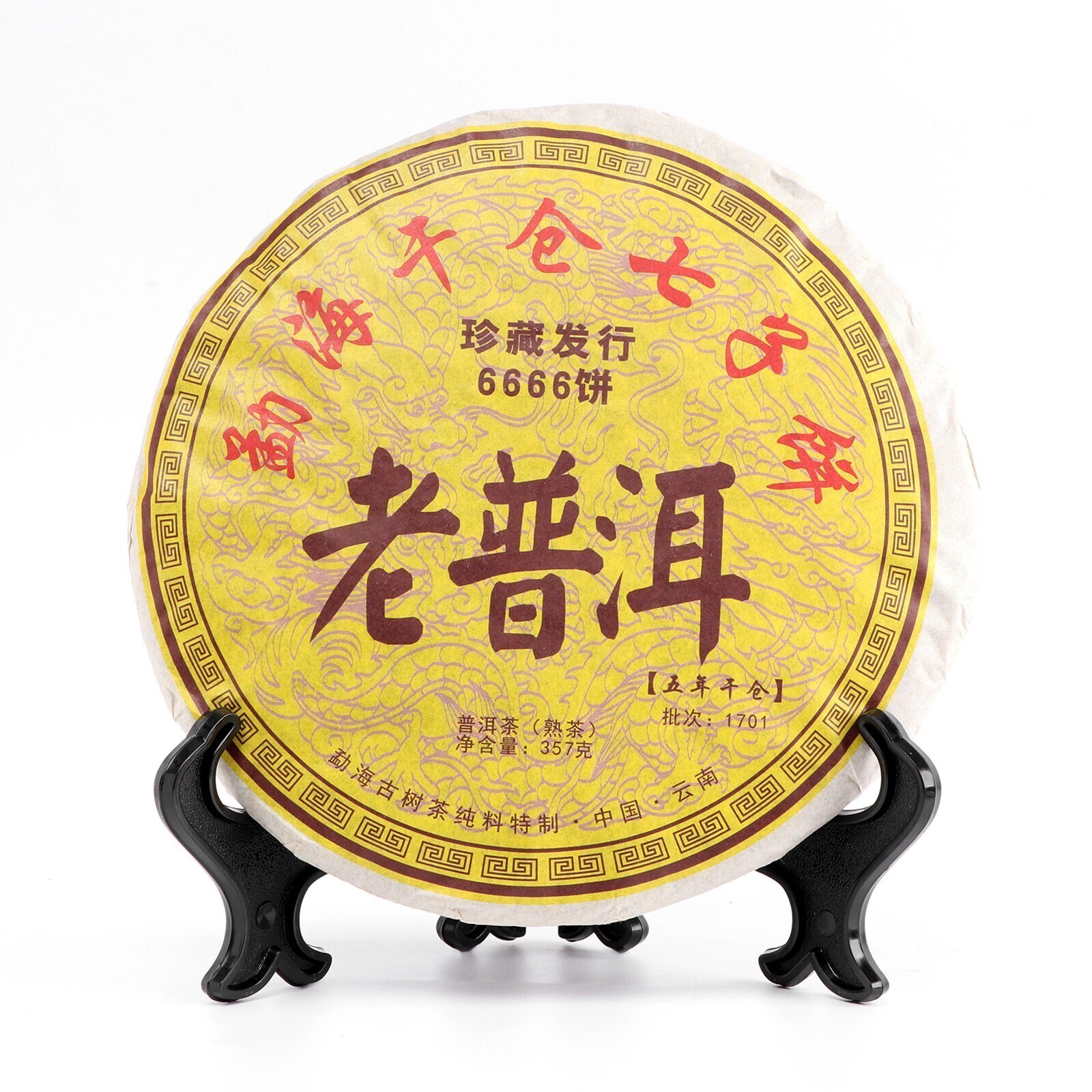 Китайский выдержанный чай "Шу Пуэр. Lao Puer, 6666", 357 г, 2013 г, Юньнань, блин