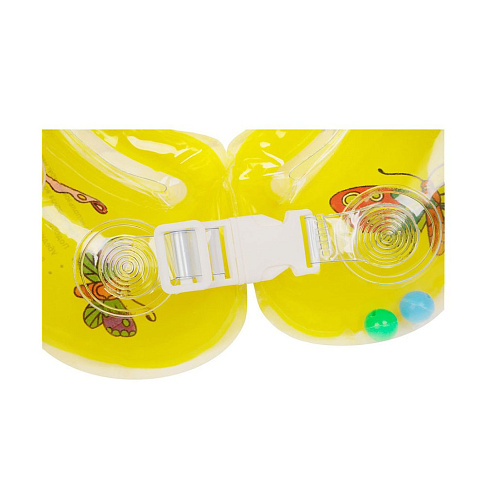 Круг на шею для купания с ярким рисунком веселых бабочек и с разноцветными шариками. На круге предусмотрены специальная выемка для подбородка, прочная застежка, липучка и удобные ручки на нижней камере, за которые мама сможет катать ребенка по воде.
