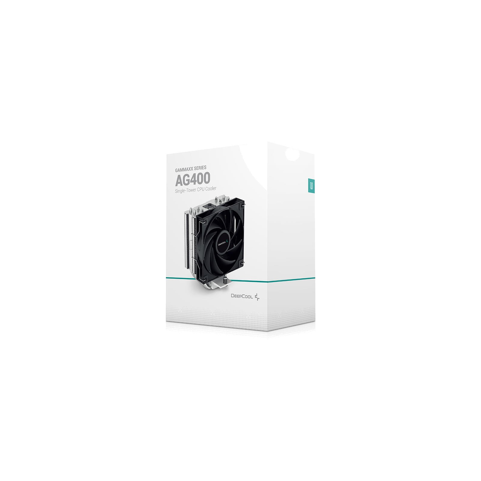 Алюмінієвий радіатор обдувається 120 мм вентилятором Deepcool AG400 з PWM-керуванням та довговічним гідродинамічним підшипником ковзання (Hydro Bearing). Швидкість його обертання може змінюватися від практично безшумних 500 об/хв до значних 2000 об/хв, при якій забезпечується вражаюча продуктивність до 2,1 м повітря в хвилину при високому статичному тиску (2,53 мм. вод. Ст). Кулер комплектується набором кріплень для монтажу на материнські плати з процесорними роз'ємами Intel LGA1700/1200/115X або AMD AM5/AM4/AM3(+) (тобто сумісний із абсолютною більшістю плат класу Mainstream та Performance).