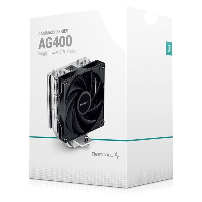 Основою процесорного кулера Deepcool AG400 стала система з чотирьох мідних нікельованих U-подібних теплових трубок діаметром 6 мм, верхня частина яких має радіатор, що складається з алюмінієвих пластин товщиною 0,25 мм (відстань між пластинами 2 мм). Для покращення теплопередачі застосовано технологію прямого контакту шліфованої поверхні трубок із кришкою теплорозподільника CPU.