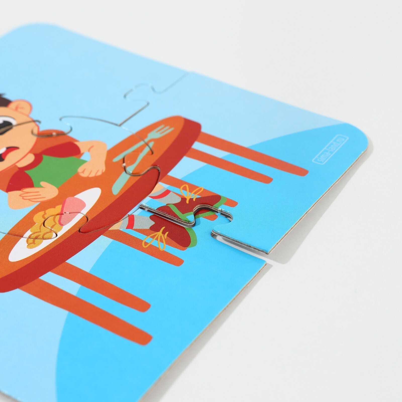 Внутри вас ждут 6 пазлов: «Эмоции и чувства» — 4 шт. и «Что такое хорошо, что такое плохо» — 2 шт. Для каждого такого пазла предназначено 4 детали. Также пазлы двухсторонние. Если их собрать и перевернуть, вы обнаружите цельную картинку. Обсудите её с ребёнком на предмет того, хорошо ведут себя персонажи или нет.
