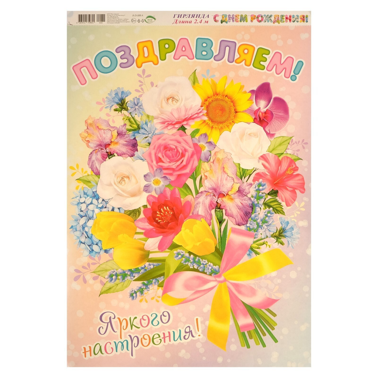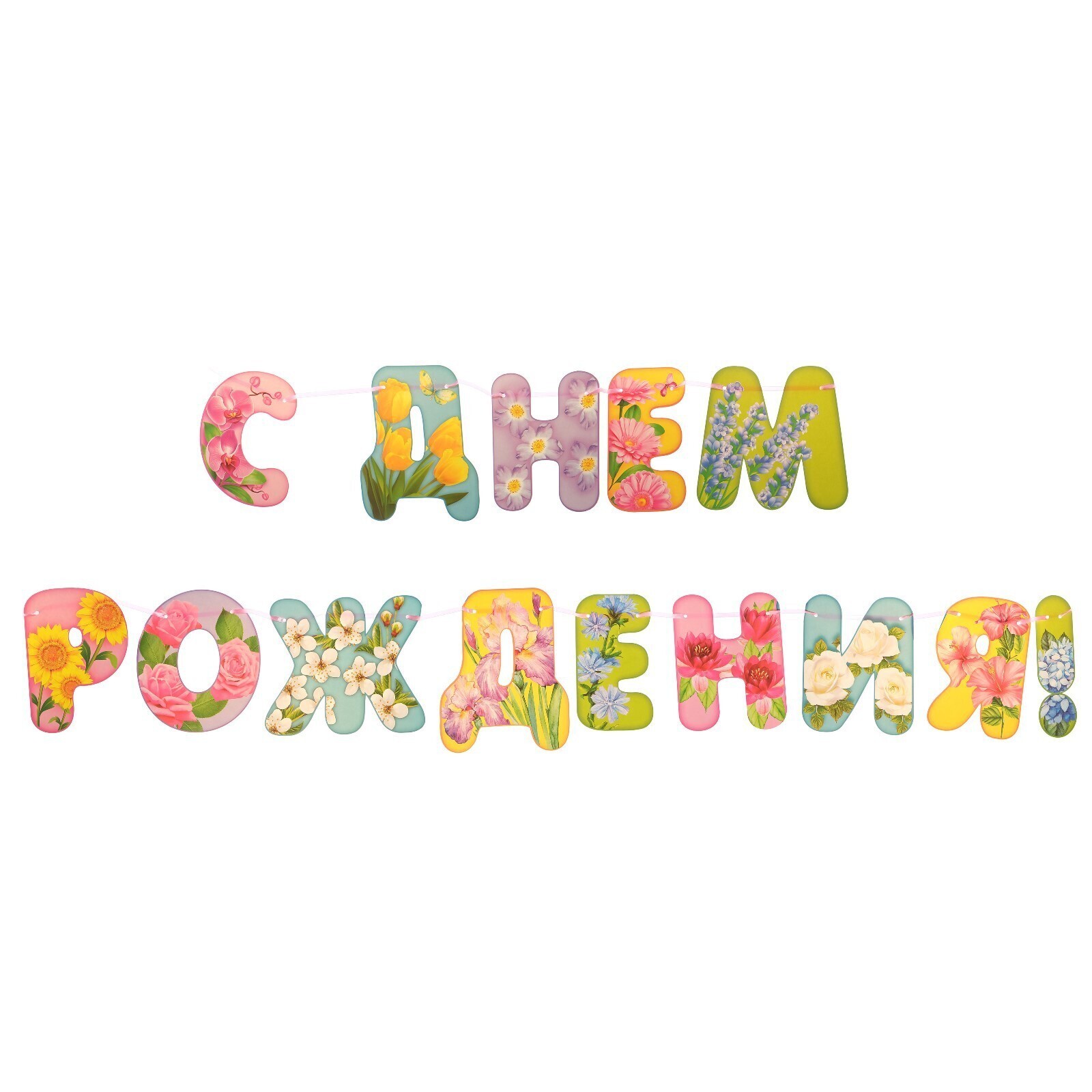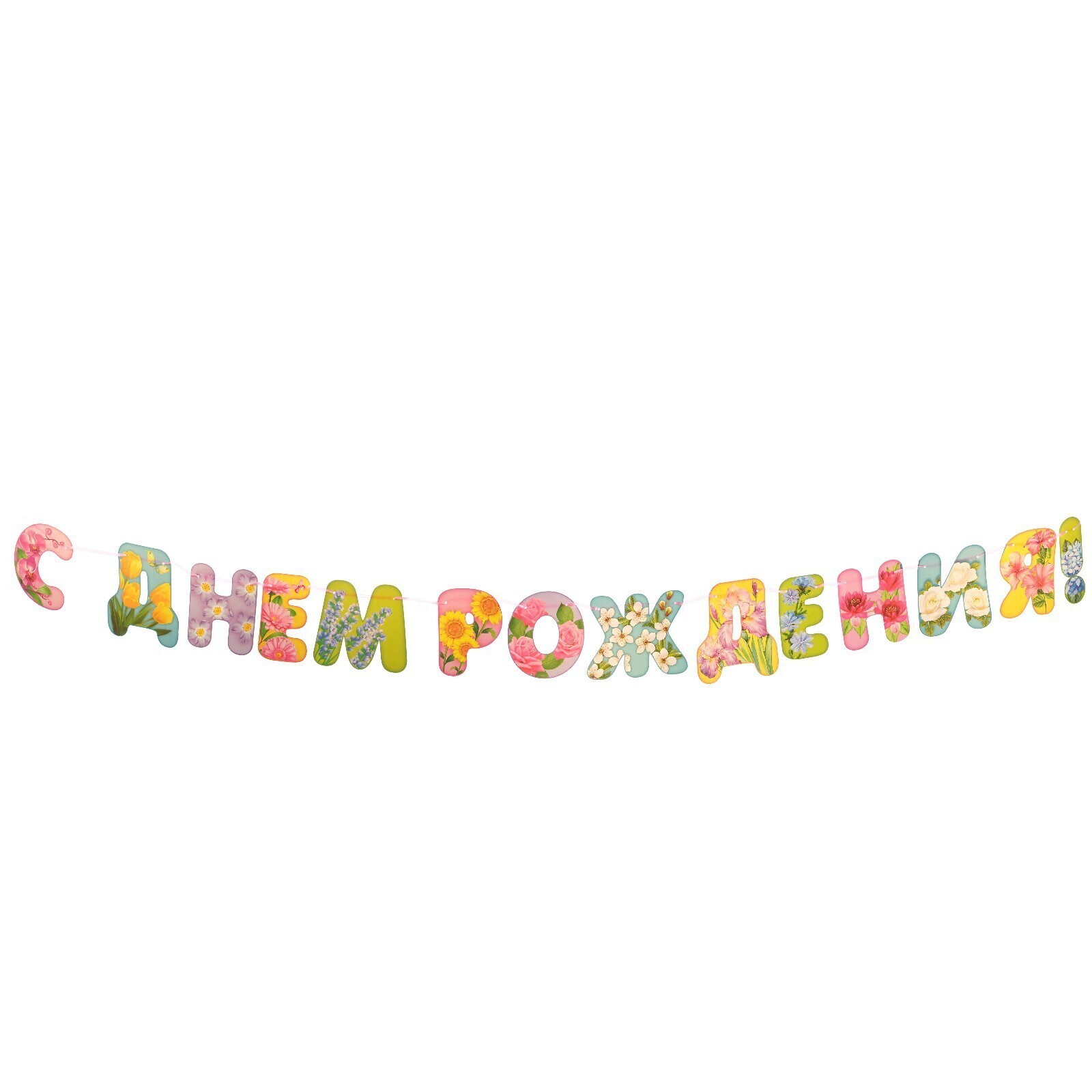 Гирлянда "С Днем Рождения!" цветы, 240 см