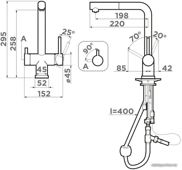 • Длина (вылет) излива 198 мм