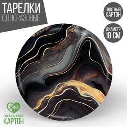 Тарелка бумажная "Мрамор",чёрный, 18 см