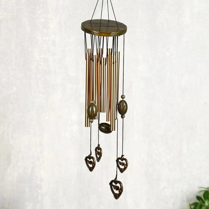 Музыка ветра металл "Сердце со стрелой" 9 трубочек h=45 см