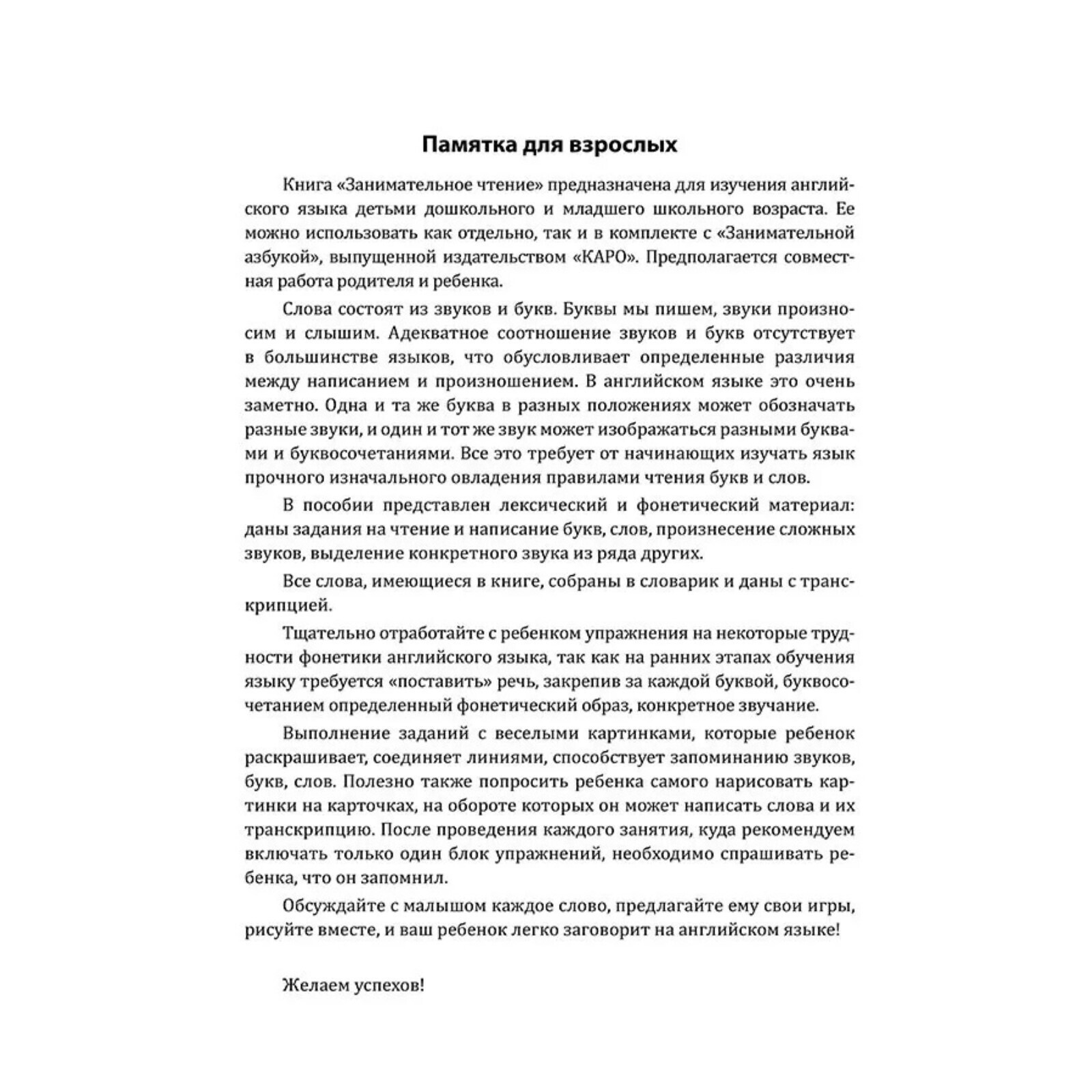 «Занимательное английское чтение» – это пособие с эффективными, грамотно структурированными и интересными заданиями. Пособие адресовано детям, которые уже знают английский алфавит и приступили к обучению чтению.