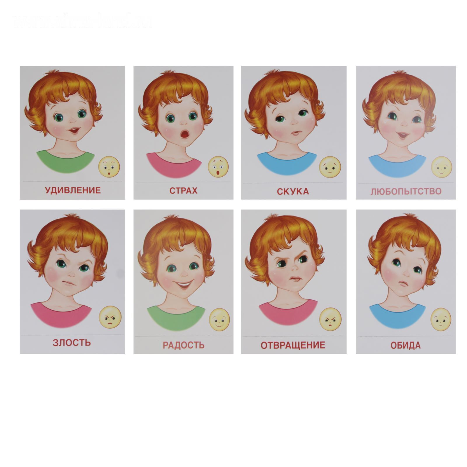 Демонстрационные картинки "Чувства и эмоции" 16 картинок с текстом, 173х220мм