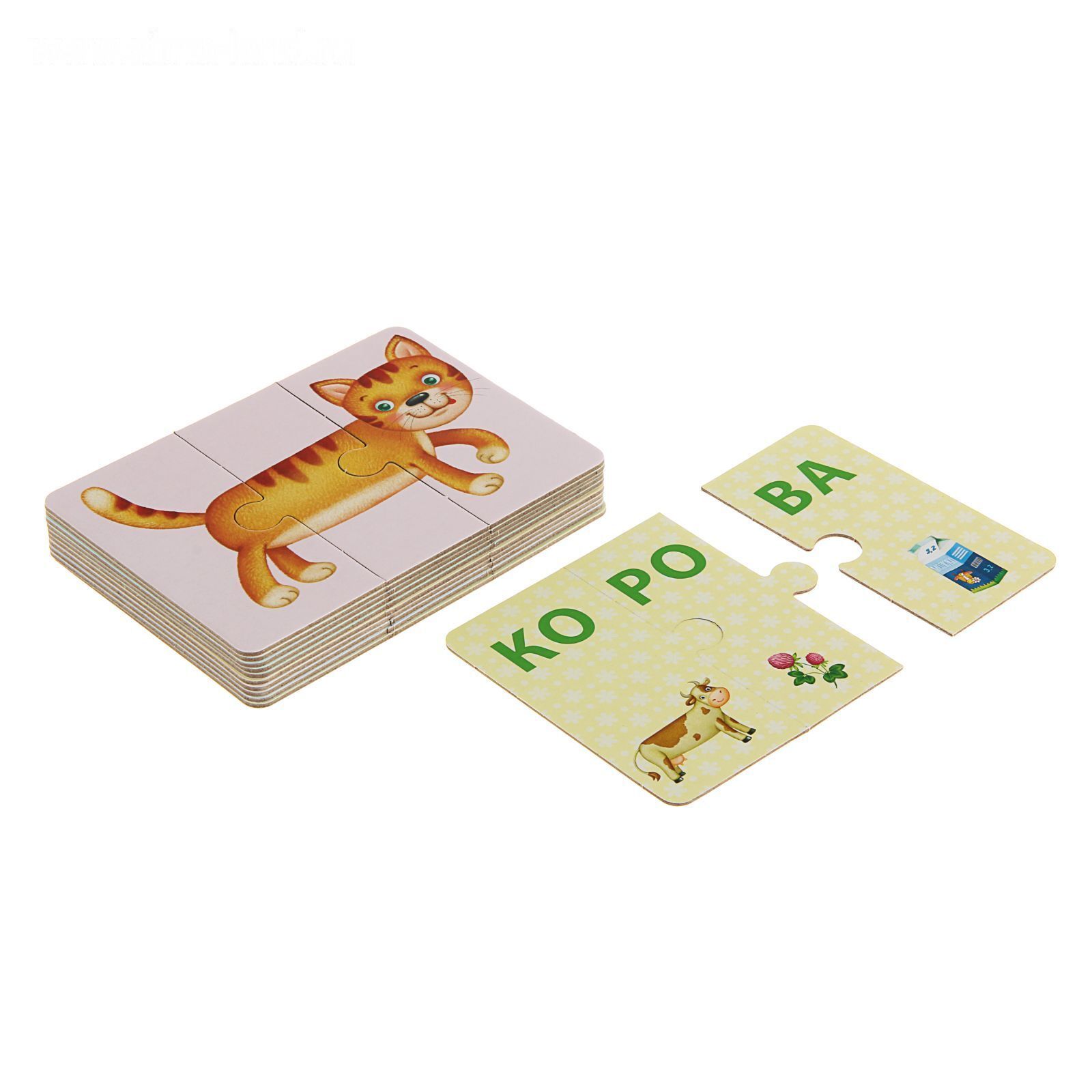 Развивающие карточки-пазлы «Зоопутаница: собираем картинки, слоги и слова», 33 карточки