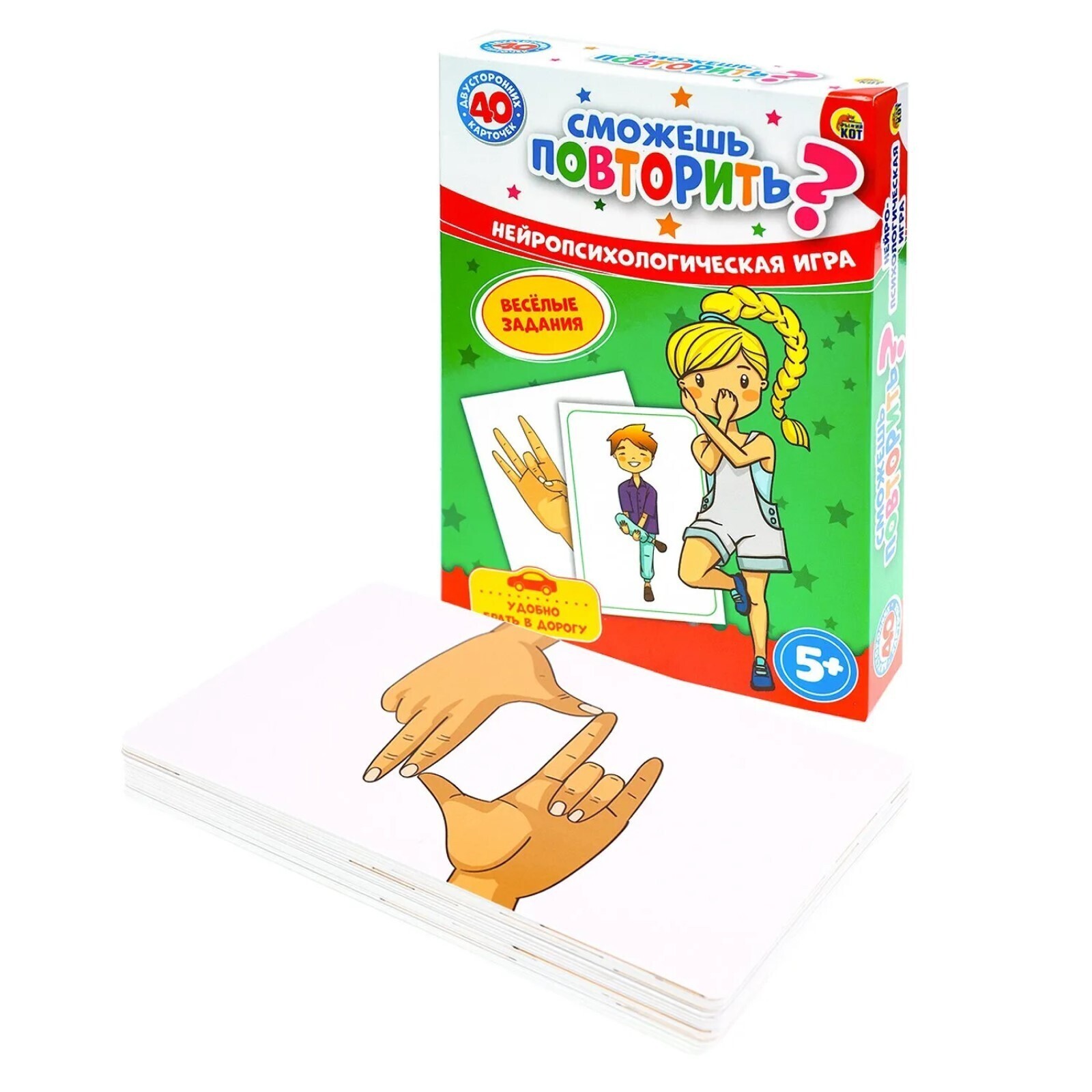Игра «Сможешь повторить? Нейропсихологическая игра», 40 двусторонних карт
