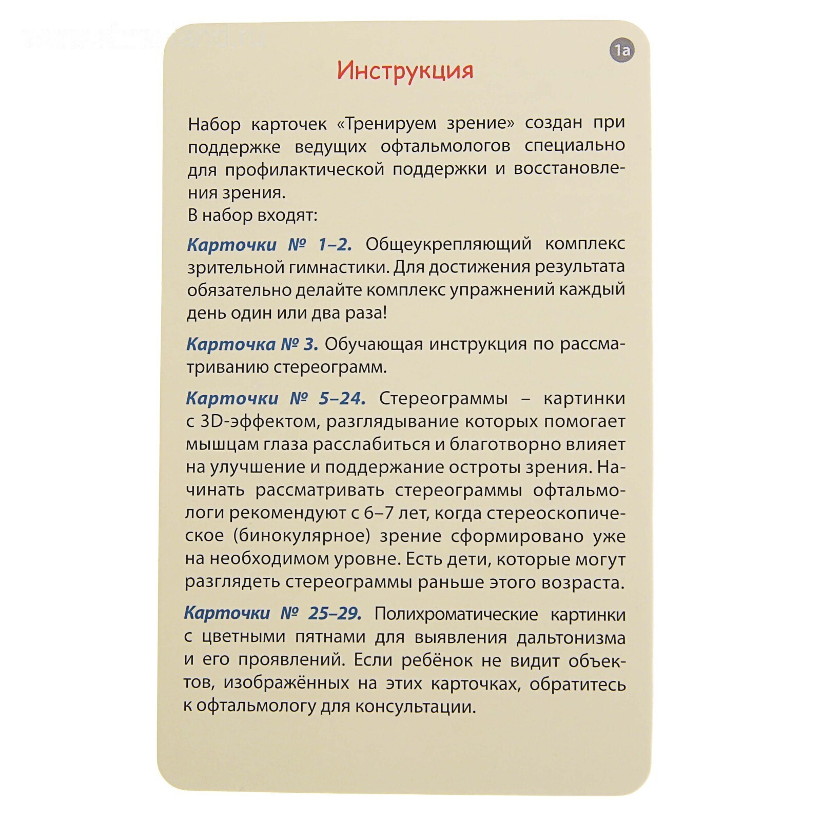 Развивающие карточки «Тренируем зрение», 50 двусторонних карточек