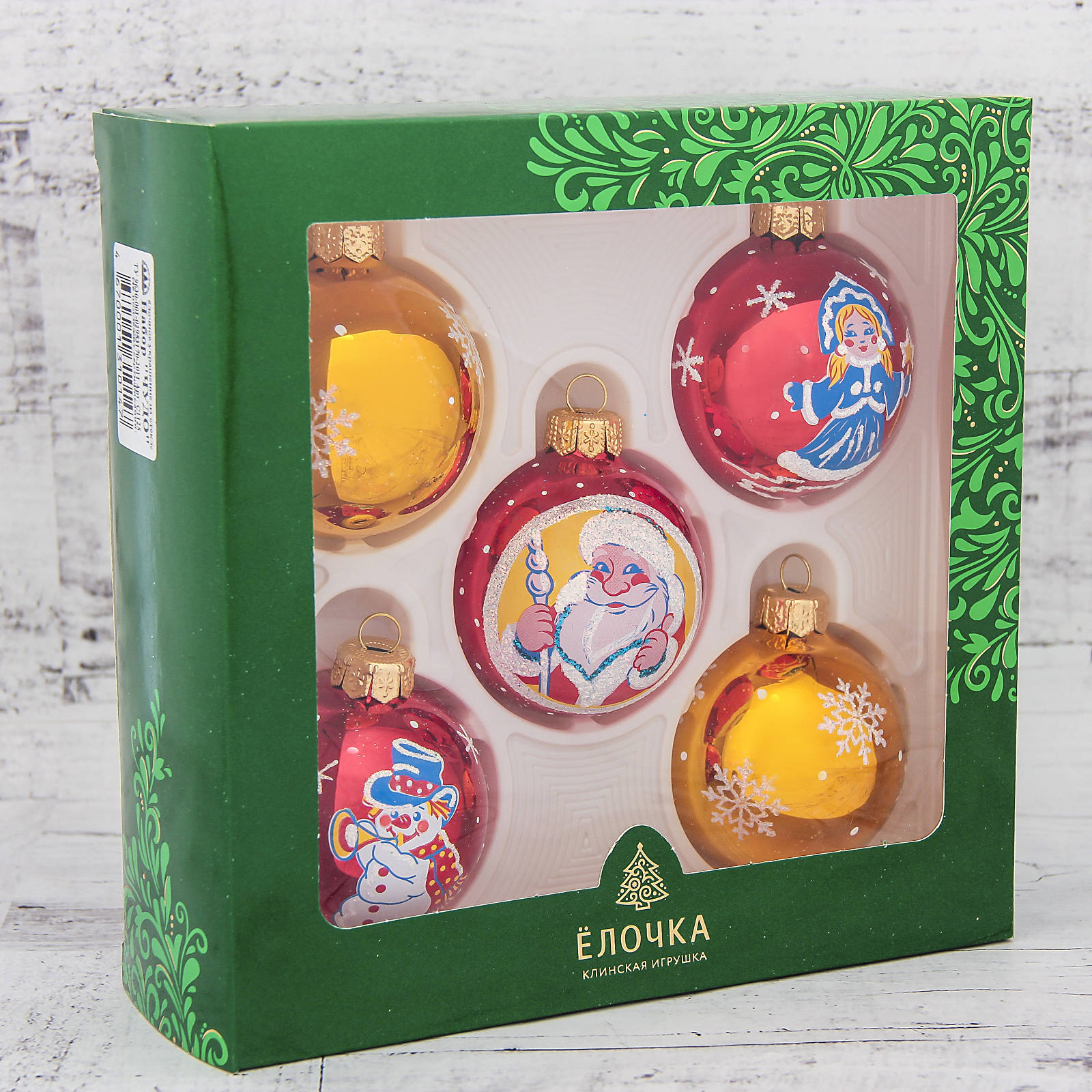 Набор новогодних шаров "Чудо" (набор 5 шт) 6 см