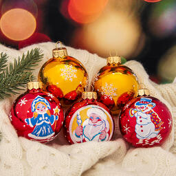 Хрупкий материал и изумительная роспись превращают каждое изделие в произведение искусства, второго такого же не найти. Набор ёлочных украшений станет эксклюзивным подарком для коллекционера или ценителя уникальных новогодних игрушек.