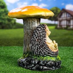 Садовая фигура из полистоуна (искусственного камня) — оптимальное решение для уличных условий. Этот материал не выцветает на солнце, даже если находится под воздействием ультрафиолета круглый год. Искусственный камень имеет низкую пористость, поэтому ему не страшна влага и на нём не появятся трещины. Садовая фигура "Ёж на боку под грибами" 24х28х32cм будет хранить красоту сада долгие годы.