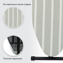 ОписаниеУниверсальный чехол для гладильной доски легко и быстро вернет изношенной поверхности аккуратный вид. А стильный дизайн чехла прекрасно впишется в современный интерьер.
