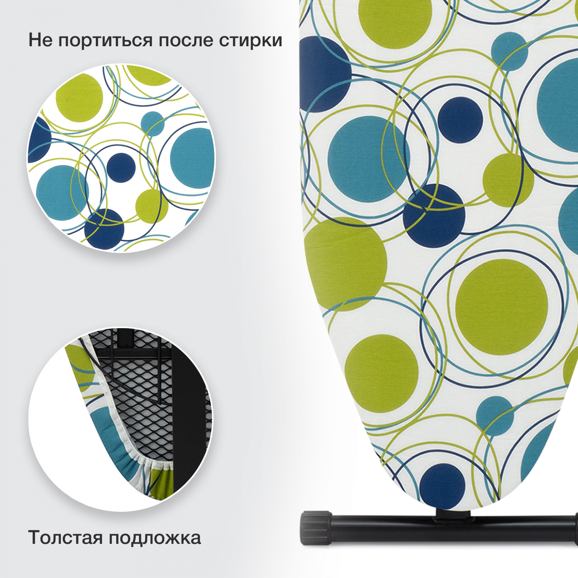 ОписаниеУниверсальный чехол для гладильной доски легко и быстро вернет изношенной поверхности аккуратный вид. А стильный дизайн чехла прекрасно впишется в современный интерьер.