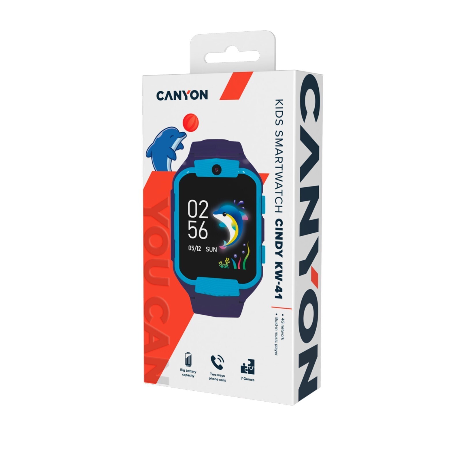 Детские смарт-часы Canyon KW-41, 4G, MP3 плеер, звонки, игры, камера, IP67, синие