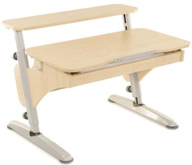Парта оснащена шухлядою для канцтоварів, на телескопічних наплавлячих, гачком для рюкзака і упором для зошитів. Виконана на міцній металевій рамі з деталями з високоякісного ЛДСП товщиною 18 мм.