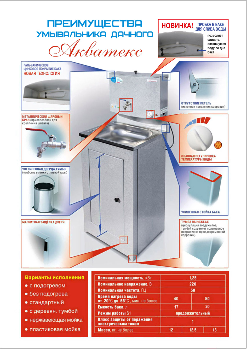 Умывальник для дачи АКВАТЕКС С водонагревателем / slkelk08 (бронза)