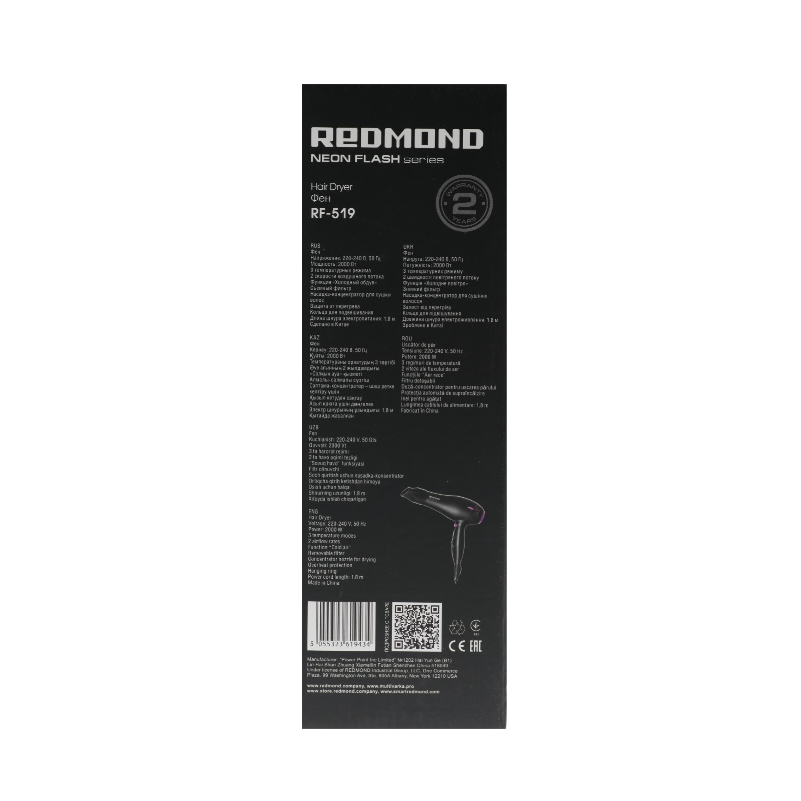 Фен REDMOND RF-519, 2000 Вт, 3 температурных режима, 2 скорости, черный