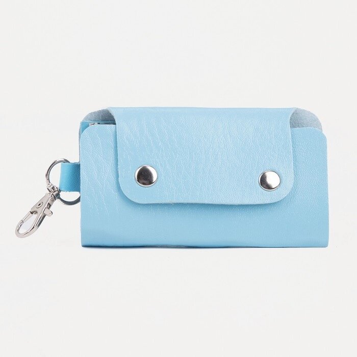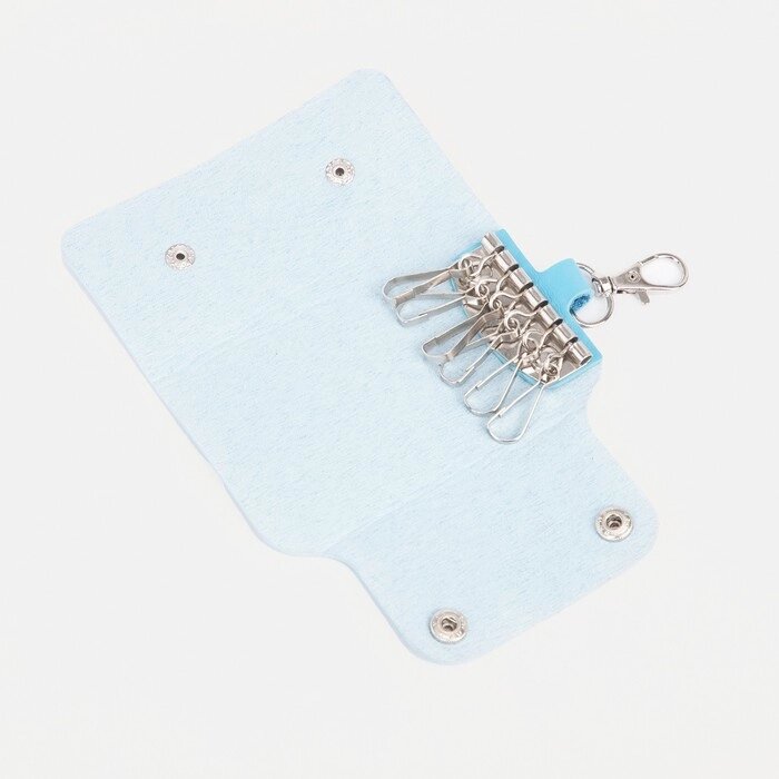 Ключница на кнопке, 7 карабинов, цвет голубой