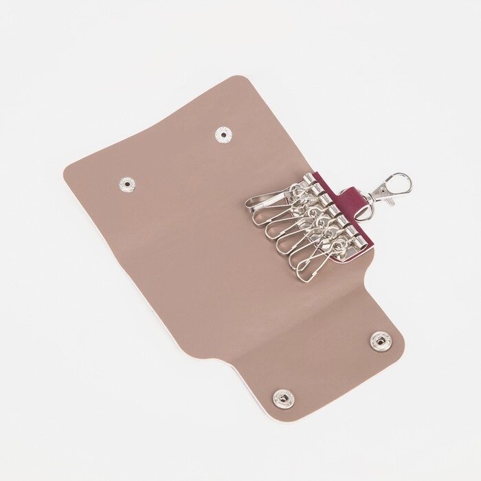 Ключница на кнопке, 7 карабинов, цвет бордовый