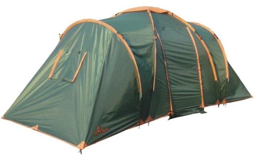 Шестимісний кемпінговий двокімнатний намет Totem Hurone розділений на 2 окремих житлових відсіки просторим наскрізним тамбуром, де можна зручно розмістити речі, зібратися з друзями в негоду і навіть розмістити кемпінговий столик і пару стільців.