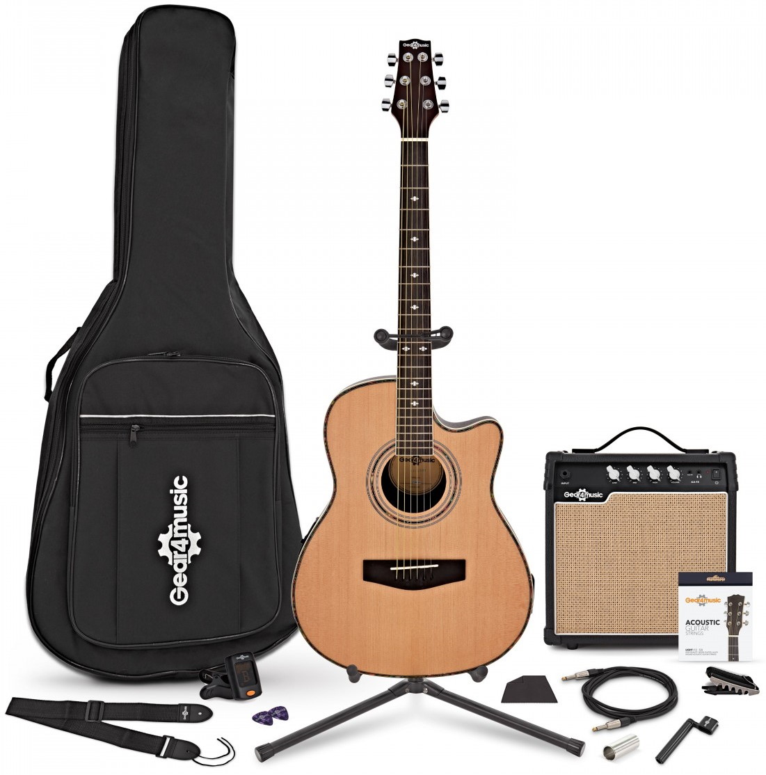 Gear4music Roundback Electro Acoustic Guitar Complete Pack