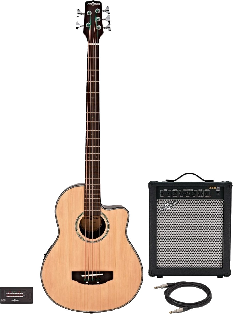 Gear4music Roundback Electro Acoustic 5 String Bass Guitar 35W Amp Pack