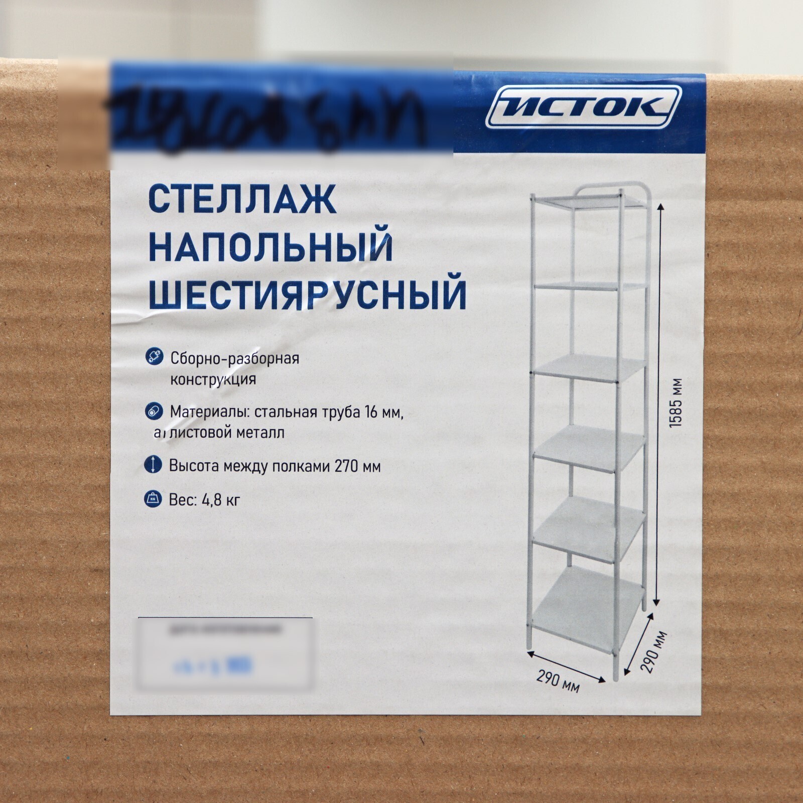 Стеллаж напольный шестиярусный, 29×29×158,5 см, цвет белый