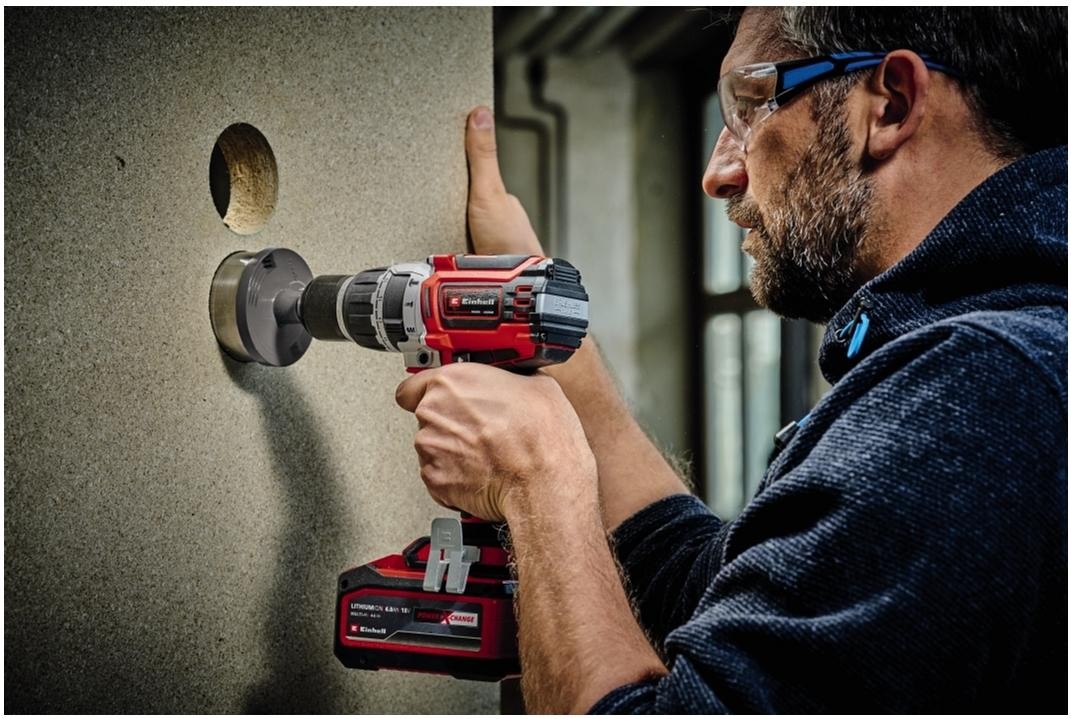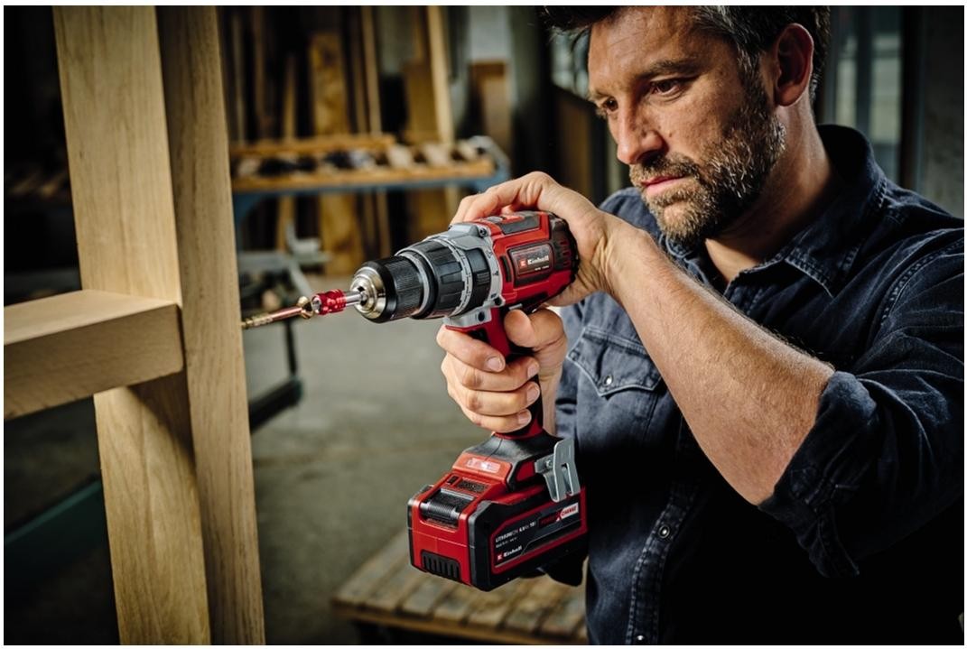 Безщітковий мотор з крутним моментом 60 Нм забезпечує користувачів високою потужністю під час свердління і загвинчування на робочому місці навколо будинку, в майстерні та гаражі. Для потужного і швидкого свердління акумуляторний шуруповерт має дві швидкості. Функція швидкої зупинки дозволяє швидко і легко замінювати приладдя у високоякісному металевому патроні 13 мм. Додаткова рукоятка допомагає зменшити фізичні навантаження на користувача при свердлінні; ергономічний дизайн з м’якими накладками на корпусі забезпечують комфортну роботу. Для роботи у місцях, де замало освітлення, шуруповерт має LED підсвічування робочої зони. Поставляється без акумулятора і зарядного пристрою, вони доступні окремо.