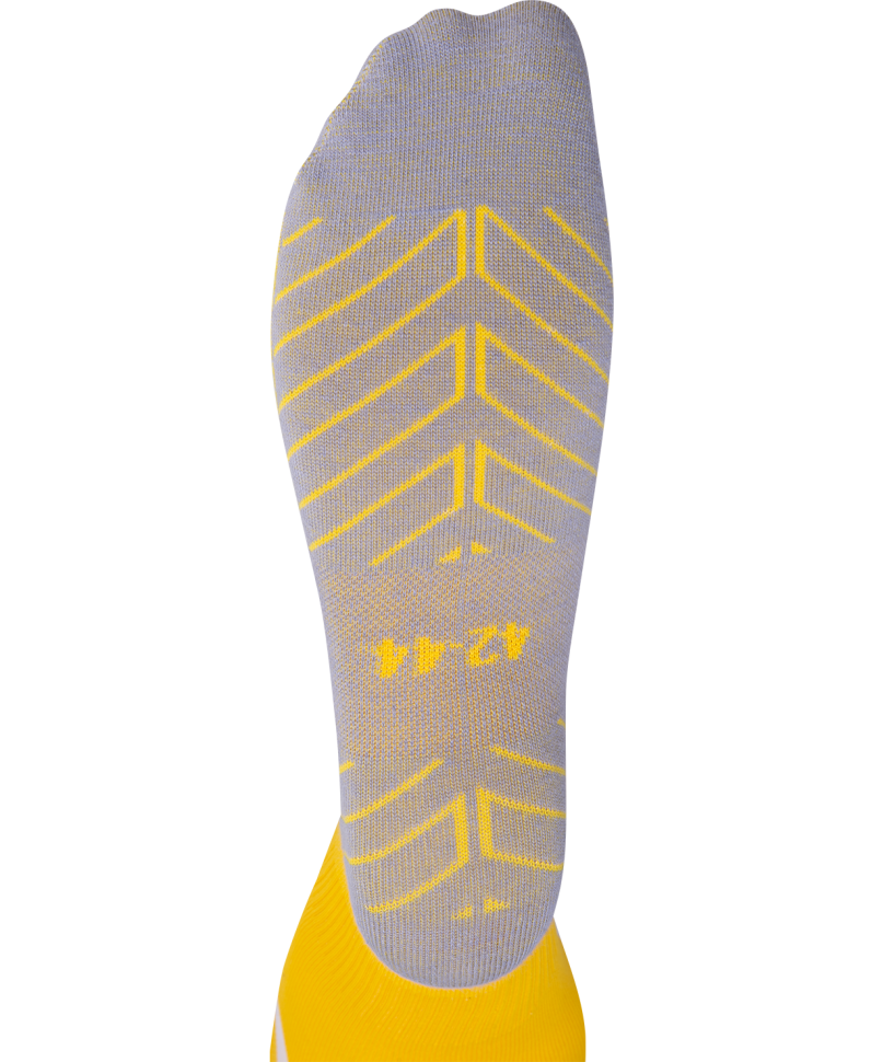 Футбольные гетры с хлопковым носком обеспечивают надёжное сцепление с подошвой. Динамическая поддержка свода стопы и дополнительная амортизация в ключевых зонах обеспечивают плотную и удобную посадку на ноге. Улучшенные эргономические свойства резинок для максимально комфортной игры. В структуру ткани вплетены специальные волокна, которые имеют различную толщину, что обеспечивает впитывание и отвод пота на наружный слой, где происходит его испарение. Зональная амортизация позволяет снизить давление. На контрастной полоске расположен логотип бренда. Характеристики: Состав: полиэстер 62%, хлопок 20%, полиамид 10%, эластан 8% Цвет: желтый/белый Размер: 28-30, 32-34, 35-47, 38-41, 42-44 Производство: Россия