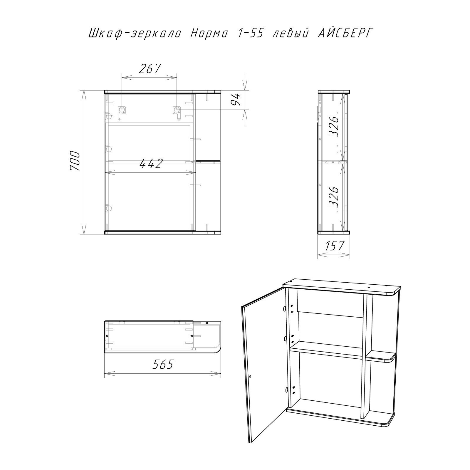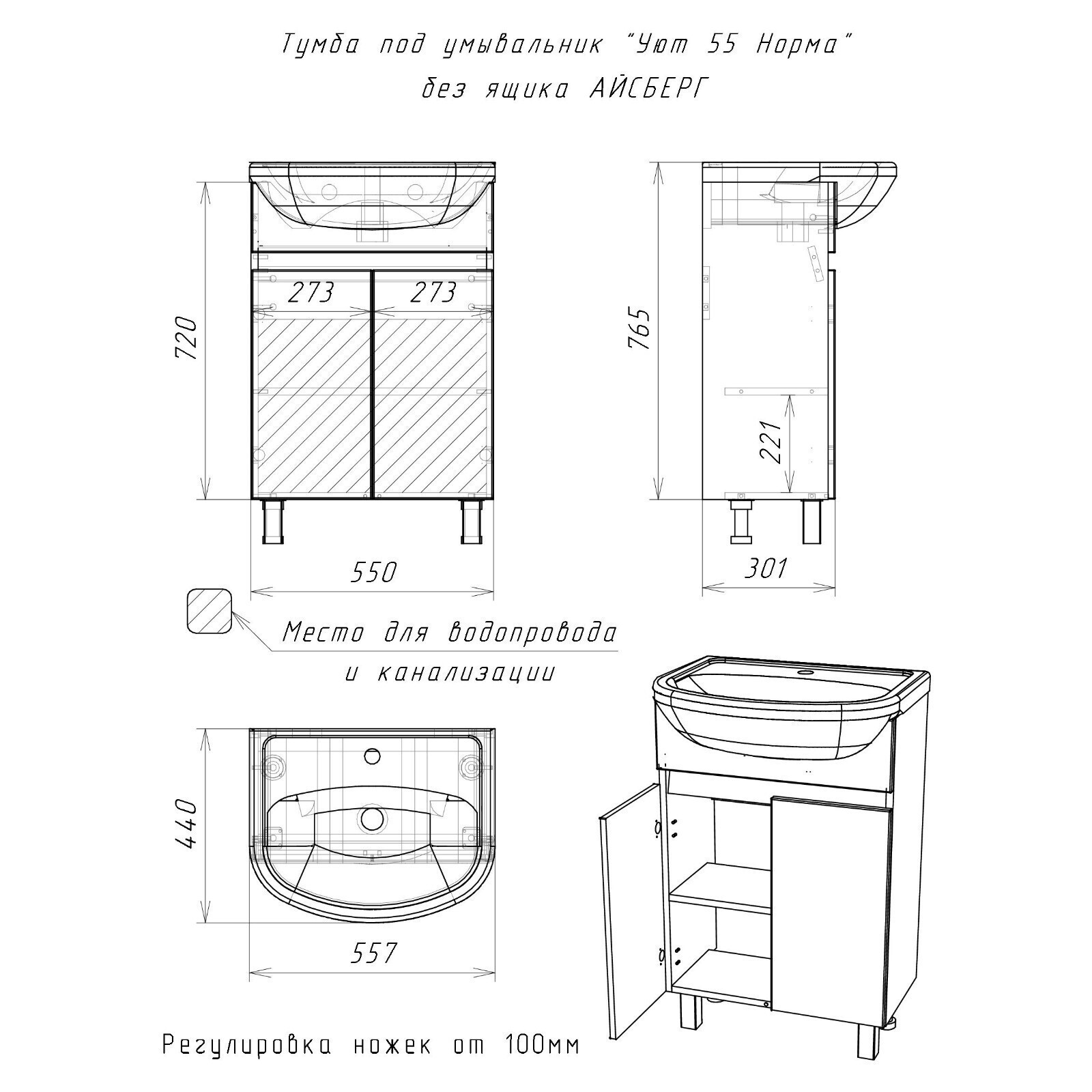 Комплект мебели для ванной "Уют 55 Норма" левый АЙСБЕРГ