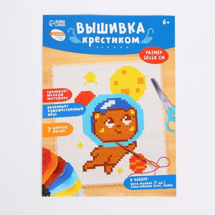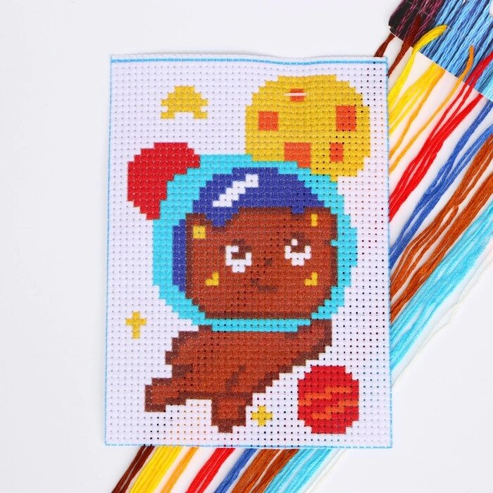 Вышивка крестиком "Мишка в космосе", 14х10 см