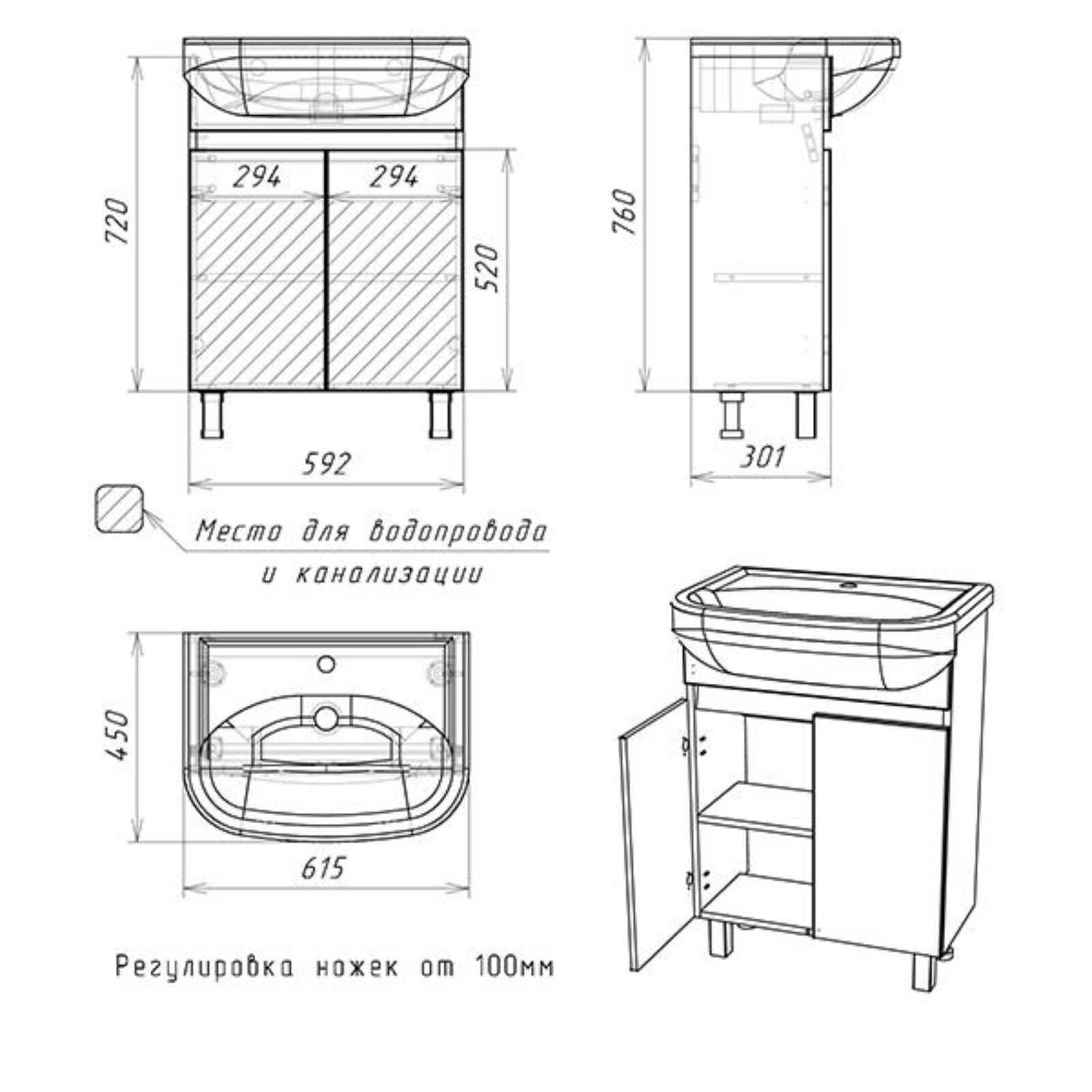 Тумба под умывальник "Уют 60 Норма" 30,1 х 59,2 х 82