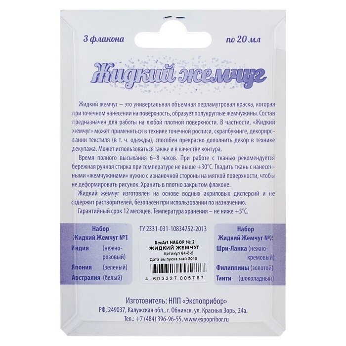 Жидкий жемчуг дропс, набор №2, DecArt, 3 цвета x 20 мл (Шри-Ланка, Филиппины, Таити), морозостойкая