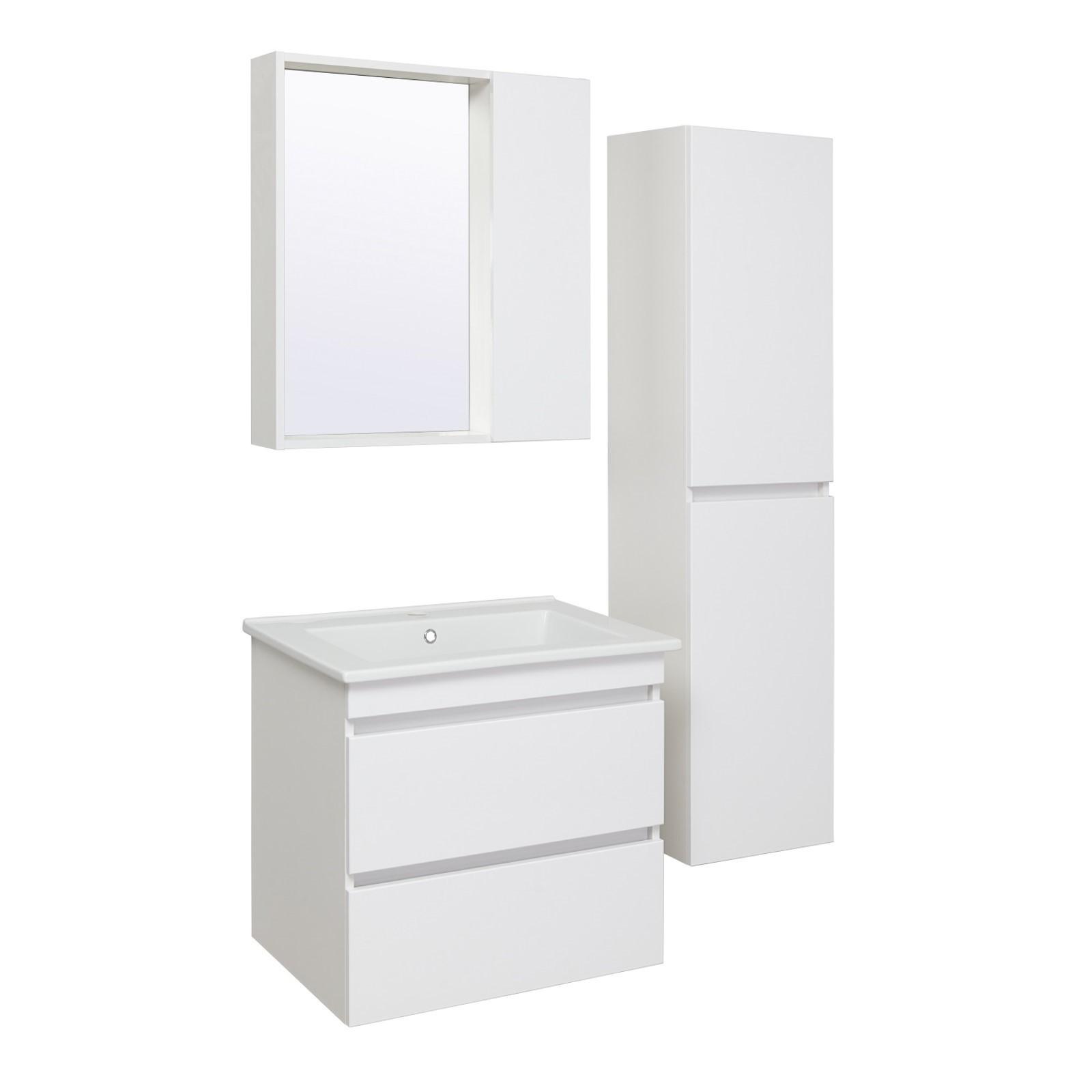 Корпус изделий изготовлен из белого ЛДСП, а фасады облицованы белой пленкой ПВХ.