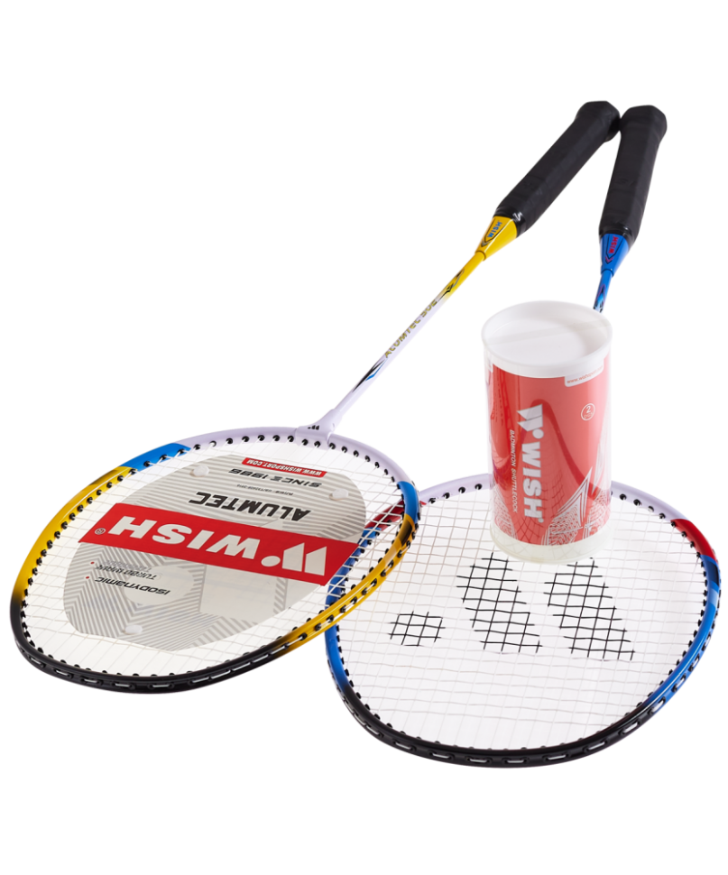 Набор для бадминтона Alumtec 502, 2 ракетки, 2 волана, синий/желтый 4680459081438