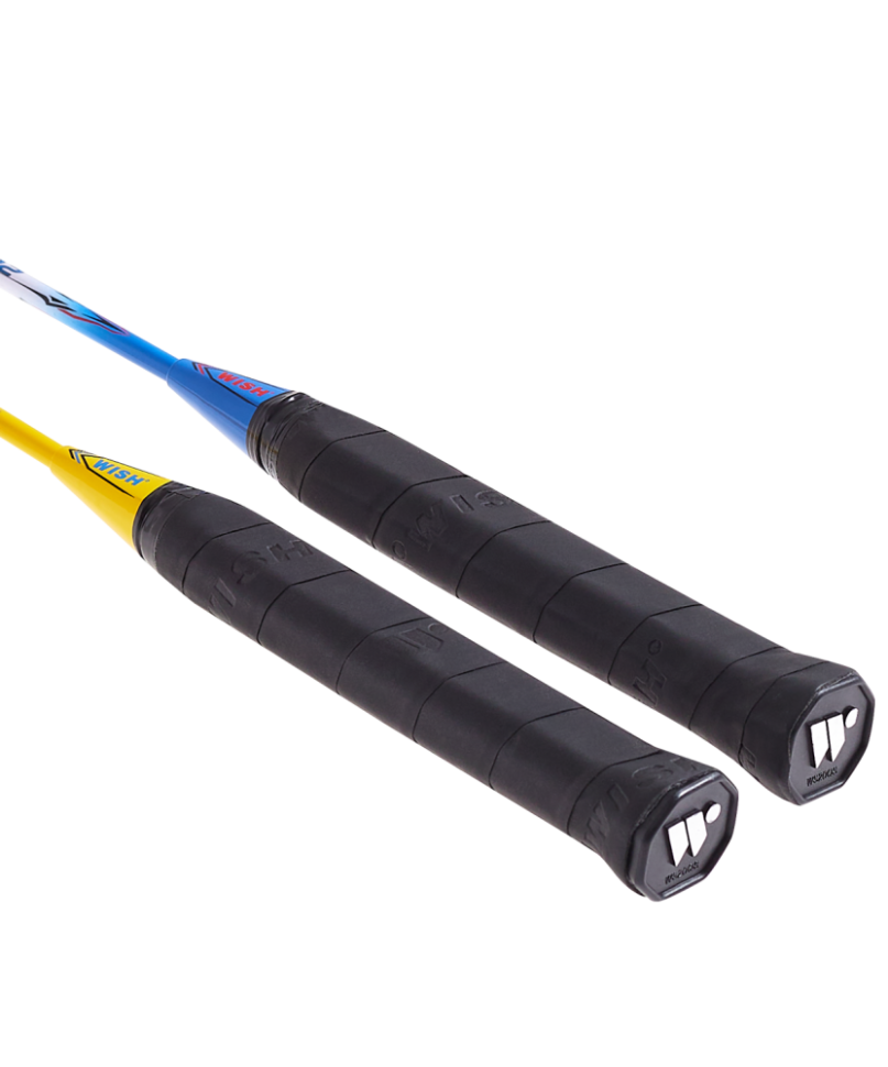 Набор ракеток для бадминтона Alumtec 502 бренда Wish состоит из двух ракеток овальной формы, двух ПВХ-воланов и специального чехла для хранения и переноски. Набор разработан для бадминтонистов-любителей, которым требуется долговечная и стабильная в игре ракетка. Узкий алюминиевый обод в сочетании с новейшими технологиями виброгашения обеспечивает уверенную и комфортную игру благодаря снижению сопротивления воздуха. Характеристики: Материал обода: алюминий Материал рукоятки: сталь Длина ракетки, см: 66,5 Ширина обода, мм: 12 Диаметр рукоятки, мм: 7 Размер рукоятки: 3 Вес ракетки, г: 105 Натяжение струн: 18-20 кгс Цвет: синий/желтый Комплектация: 2 ракетки, 2 ПВХ-волана, чехол