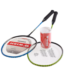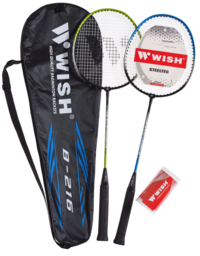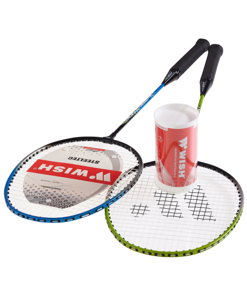 Набор для бадминтона бренда Wish состоит из 2 ракеток овальной формы, 2 воланов из ПВХ и полноразмерного чехла для хранения, оснащенного удобным ремнем для переноски. Набор разработан для бадминтонистов-любителей, которым требуется максимально надежная, удобная в игре и маневренная ракетка. Прекрасно подходит для игры в атакующем стиле. Обратите внимание! Рукоятка ракетки упакована в защитную полимерную плёнку. На пленке белым цветом нанесен логотип Wish. На самой рукоятке белый логотип отсутствует - вместо него выполнено тиснение на оплётке черного цвета. Характеристики: Материал стержня: сталь Длина ракетки, см: 66,5 Ширина рамы, мм: 7,8 Диаметр древка, мм: 7 Размер ручки: 3 Вес ракетки, г: 105-109,9 Натяжение струн: 18-20 кгс Цвет: зеленый/синий Материал чехла: ПВХ В наборе: 2 ракетки, 2 волана и полноразмерный чехол Габариты набора (ДхШхВ), см: 67х21х2,7